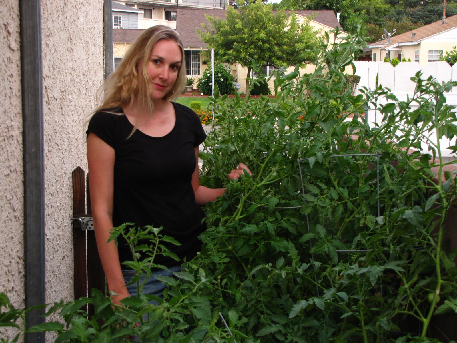 Eating things I've grown myself has delighted me since I first grew my own pumpkins in junior high, so you can imagine how excited I was to get those first tomatoes. But even more exciting has been seeing how enthusiastic Beatrice is about taking care of the plants. Every afternoon she asks to water them, to eat any ripe strawberries that appeared overnight, and to "harvest" the tomatoes. I have told her she can only pick the red, ripe tomatoes, not the green ones, so now she runs up and down the row shouting, "Only red! Only red!"