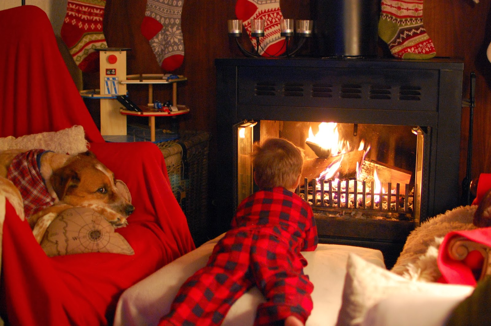 This year William slept in a basket by the fire while Dev and I set up the kids' Santa presents.